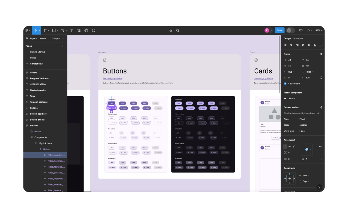 - Additional resources: For designers to actually use and design with the components and libraries, a design file is required (usually in Figma). Resources such as logos, typefaces and fonts, and icons are usually also included for designers and developers to use.
